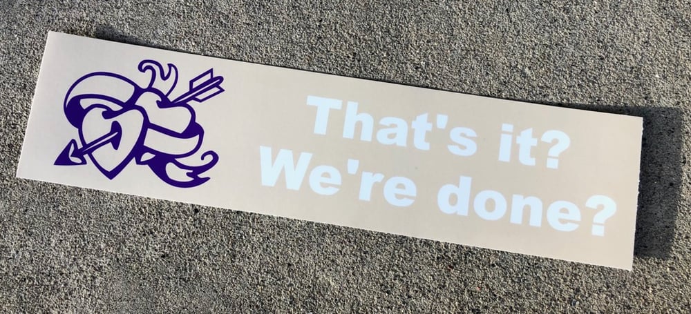 Vinyl bumper sticker. 10"x2.5" Graphic image and blue print on white background. A deal is a fucking deal.